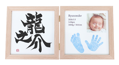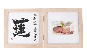書家が一枚一枚心を込めて揮毫した命名書と、赤ちゃんのお写真を収めたフォトフレームをセットにしたギフトです。