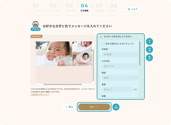 ※双子の場合はチェックボックスにチェックを入れると入力項目が表示されます。